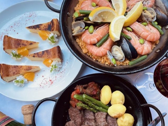 居心地のよい空間でおいしいスペイン料理が堪能できると話題の【Cueva Sol】。直輸入で仕入れる食材や調味料を中心に使用し、本場の味を提供しています。オススメは、サイズが選べる『パエリア』やスペインから取り寄せる『イベリコ豚の生ハム』。漂う香りと風味に五感が刺激される、色鮮やかなメニューが揃います。料理との相性が考えられたワインも豊富に用意。コースで堪能するもよし、お酒を片手に好みのアラカルトメニューをオーダーするもよし、シーンに合わせて楽しめます。カウンターとテーブル席のほか、開放感あふれるテラス席が完備されているのも人気のポイントです。今宵は仲間や大切な人と、心に残る食事時間を過ごしませんか。
