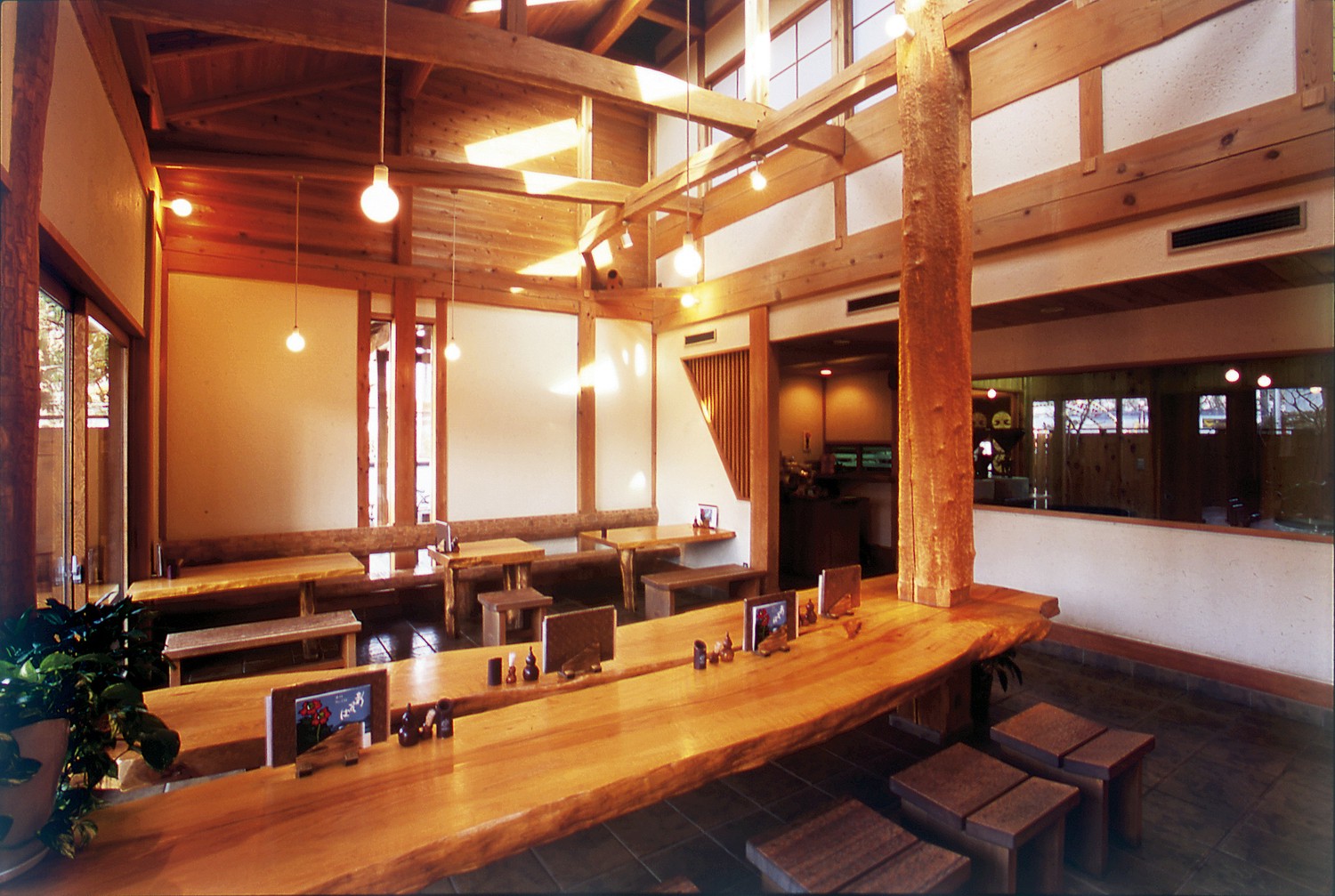 昭和32年の秘伝、手打ちそばの伝統味。 鬼ぐるみを手割り手掘りし、丹精込めて打ったそばをご堪能あれ! 木の温もりあふれる落ち着く店内でくつろぎのひとときを。