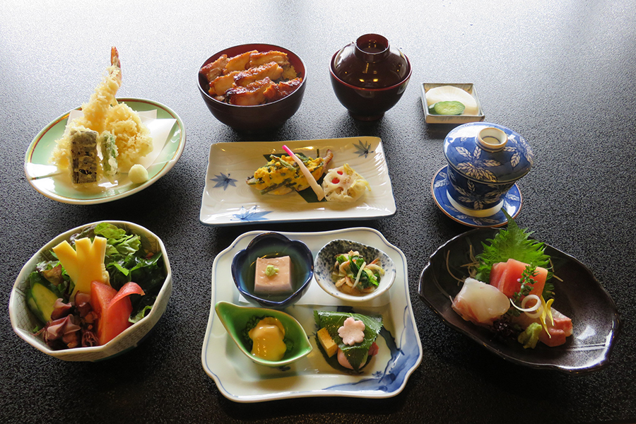 城山公園に隣接した【いづ喜】は、創業50年を越える地元で親しまれてきた日本料理店です。関東屈指の鰻「坂東太郎」を使った『鰻』は、天然ウナギにほど近い霜降りが特徴。創業以来受け継がれる鰻のたれは、50年間継ぎ足してきた伝統の味が美味と評判を呼んでいます。他にも、地元でその日水揚げされた鮮魚が味わえる『刺身盛り合わせ』や、子どもから大人まで万人に愛される『鶏の唐揚』、房州の郷土料理『鯨の竜田揚げ』や『鯨のしぐれ煮』など、人気料理が並びます。店内は日本風情漂う落ち着きの空間が広がり、テーブル席や座敷、個室など席形態も充実。お一人様から家族連れ、接待、法要、観光など、あらゆるシーンで利用されています。