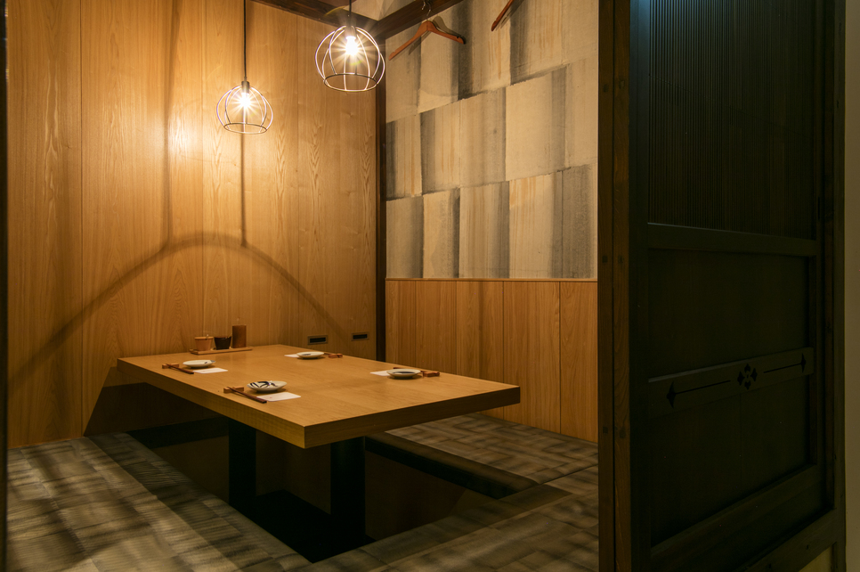 日本海の高級鮮魚と厳選銘酒をリーズナブルに お取引先との接待や大切な同僚との語らいは少し贅沢な空間で 2名~50名様対応の落ち着いた上質な完全個室をご用意