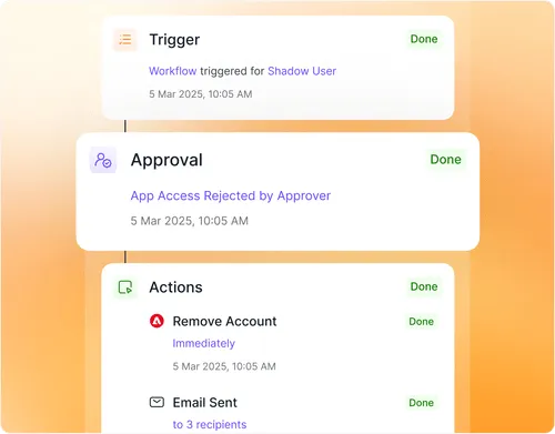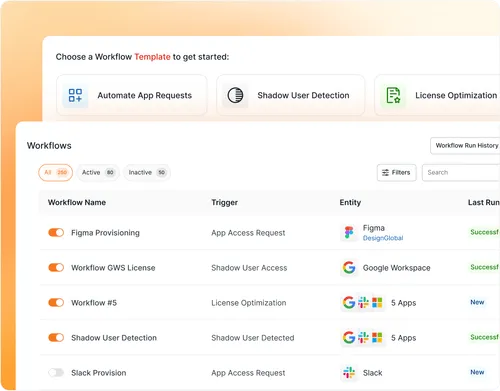 Build intelligent workflows for onboarding, license management, shadow user detection and many more, eliminating manual effort and boosting IT efficiency.