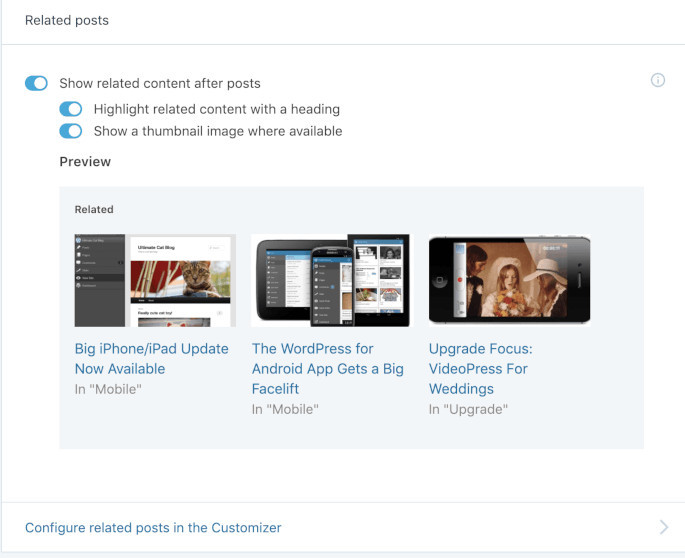 For more information, check out this support article. Most sites that activate this see an increase in traffic. Unlike many other related post plugins, we do all the analysis, processing, and serving from our cloud, so there is no additional load on your server. That’s why Jetpack Related Posts are allowed on web hosts even when similar plugins are banned.