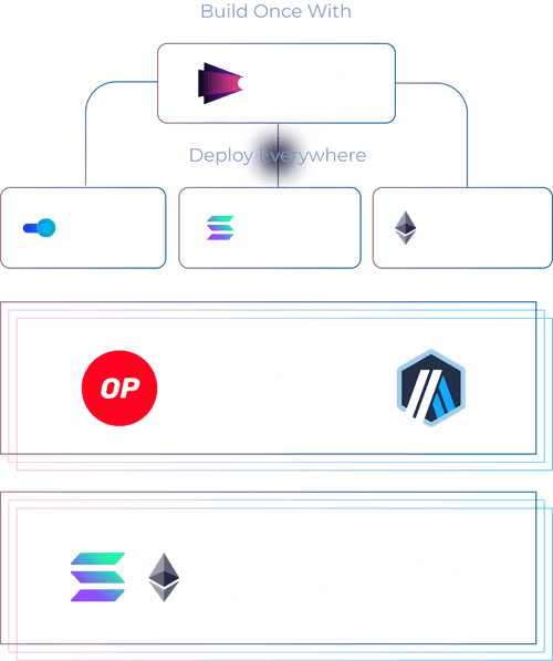 Break free from vendor lock in and easily build applications with any VM on any chain. Deploy SVM, MoveVM, and parallelized EVM apps on multiple ecosystems environments including Solana and the Optimism Superchain. Build once, deploy anywhere.