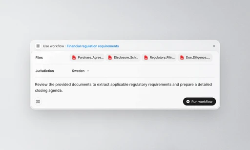 Legora is designed to fit into your existing workflows, with a simple, intuitive interface that lawyers and business teams can use from day one.