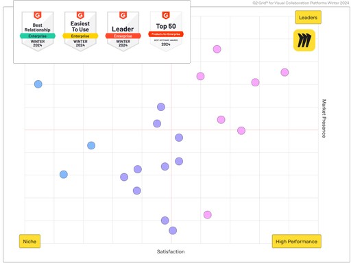 A los usuarios les encanta usar Miro para la innovación colaborativa. Somos el líder en G2 en plataformas de colaboración visual y estamos clasificados entre las 50 mejores herramientas para empresas. Miro ayuda a las grandes empresas a llevar a cabo un trabajo significativo.